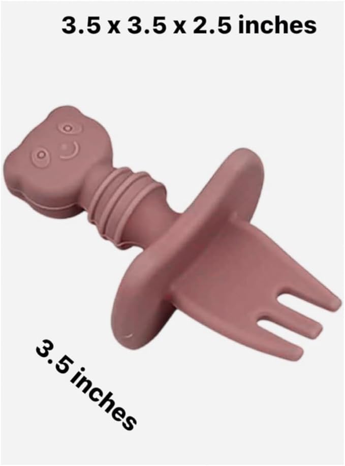 - DESIGN: ergonomically designed short flatter handle (unlike other silicone utensils on market) for better grip, the self feeding. It has ventilated choke barrier.