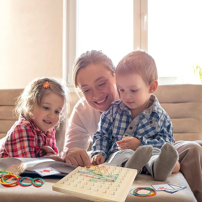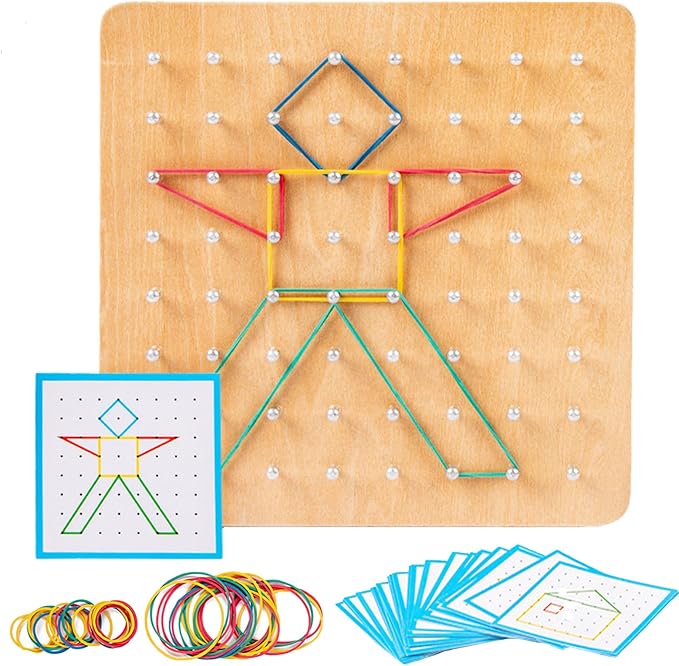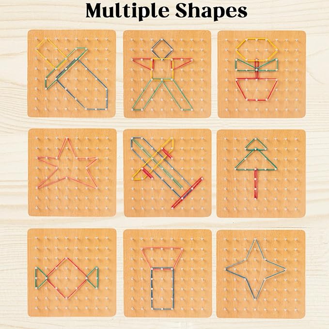 - Smart Gift - Our wonderful preschool Wooden Geoboard is the perfect gift for boys and girls who are 3 years old and above. Due to being a learning toy, that will develop their imagination while playing, it is the ideal birthday present, Christmas stocking stuffer, party favor, or Easter basket fillers. Your kids will adore this toy