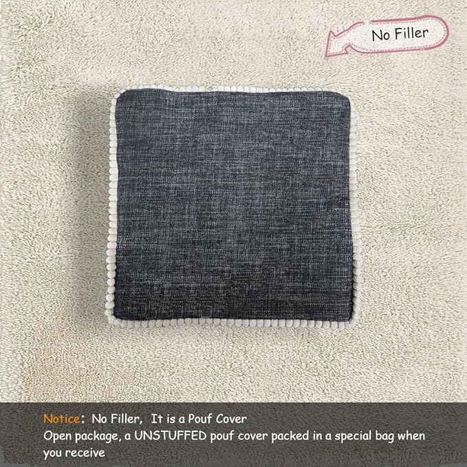 - [Unfilled Square Pouf]: Designed for versatility, this unstuffed pouf doubles as a storage solution and an ottoman cover. The modern invisible zipper makes it easy to fill with items like seasonal clothes, towels, pillows, or fiber filling. For ultimate comfort, we recommend using sponge polyester or fiber filling.