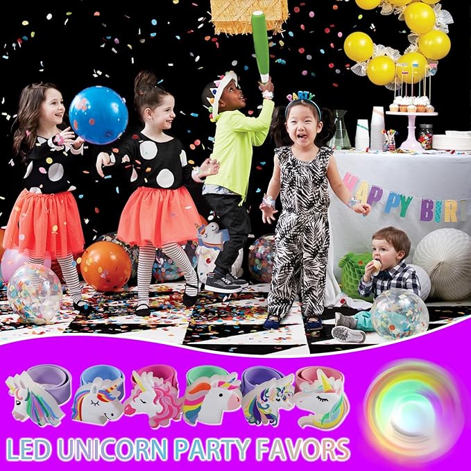 - Different from other slap bracelets for kids, our unicorn slap bracelets are made of light-up accessories and can also rotate 360 °. It's unicorn party decoration.