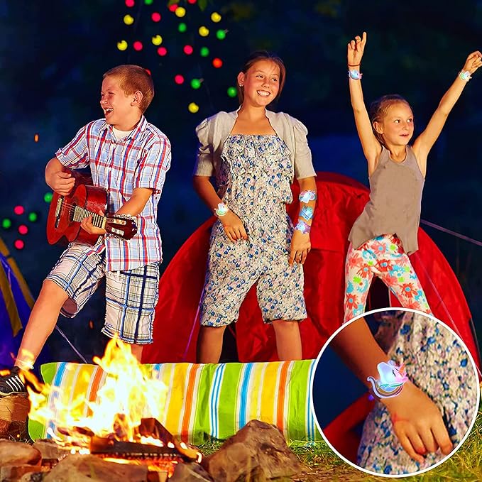 - Slap bracelets have 3 modes. Each mode has nearly 15”long lighting time, and different cool effects can be switched by pressing. More fun as Christmas stocking stuffers and Easter basket fillers gifts. Unicorn party for girls.