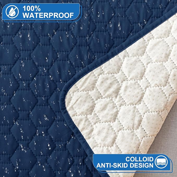 100% Waterproof Recliner Chair Covers That Stay in Place, Non-Slip Recliner Cover with 5 Pockets, Elastic Straps, Washable Reclining Chair Protector for Kids, Pets, Dogs, Dark Blue
