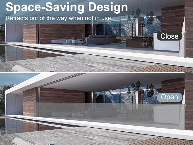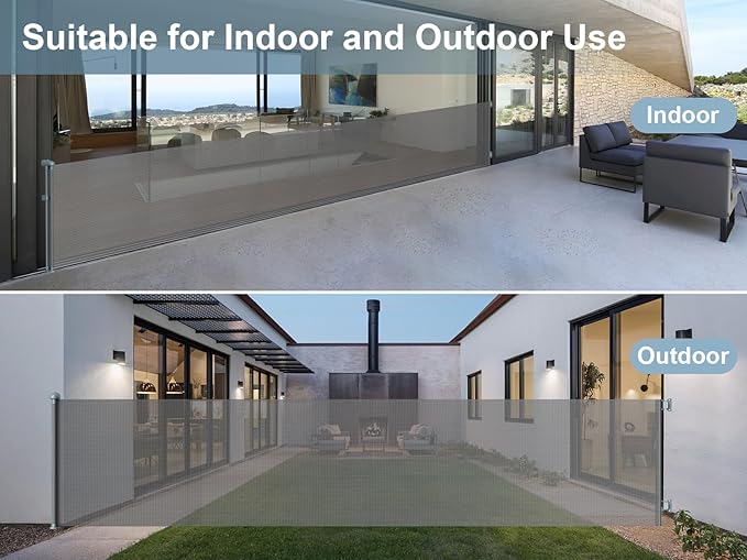- Any location: Our extra long retractable baby gate is great for the kitchen, bedroom, living room, stairs, and other restricted areas in your home, providing a safe area for your little one or pet indoors or out.