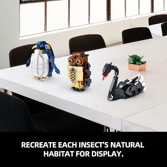 - Realistic Bird Features:This birds building toy set include Flamingo,Ostrich,Eagle,Black Swan,Penguin,Owl,Parrot and Sparrow.Designers have worked carefully to create models that looks as close as possible to the real birds.Kids will enjoy playing with this bird collection and learn about the shape and structure of birds.