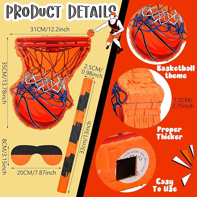 - Flawless Entertainment with Pinata Game: fill the basketball pinata with treats, hang it, and let the players hit it while blindfolded with the provided piñata stick, the anticipation of which hit will unleash a torrent of treats makes the game the life of the party, making your party full of excitement and fun