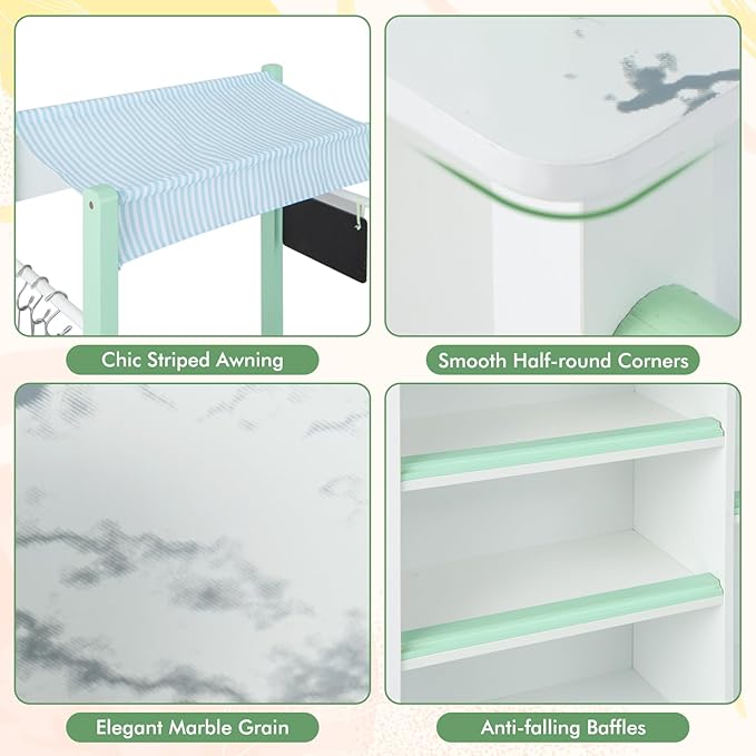 - 【Double-sided Kids Kitchen Playset】This HONEY JOY kids kitchen playset features two sides for 2 kids to play together. One kid can pretend to wash vegetables and the other one can role play selling vegetables at the same time.