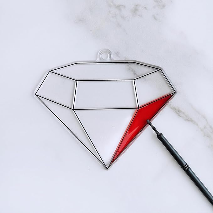 - Material: The Jewel suncatchers are crafted from transparent plastic. Suncatcher paint is translucent and sun-through when dry. Acrylic beads, featuring small holes, easily string together with fishing thread. Brush lively colors onto the suncatchers, then thread rainbow-colored beads through the top hole. Hang them with suction hooks in a sunny window, letting them fill your space with vibrant hues!