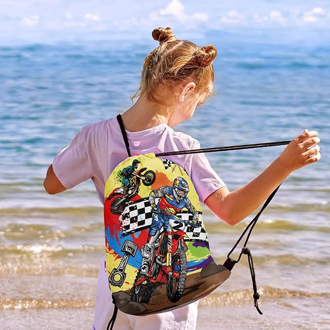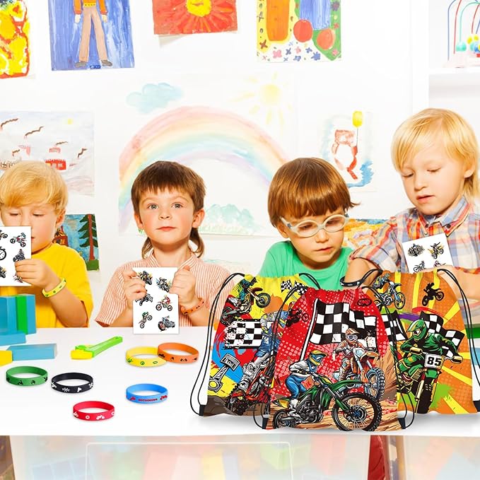 Dirt Bike Party Favor Supplies, Including Motorcycle Theme Boy Motocross Bags Drawstring Goodie Treat Bags Wristbands Badge, for Motocross Theme Kids Birthday Party Gift