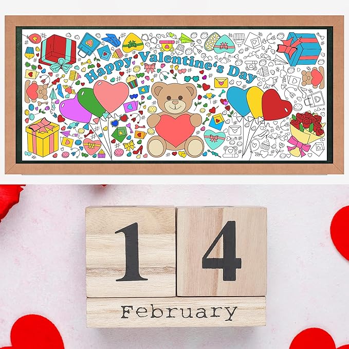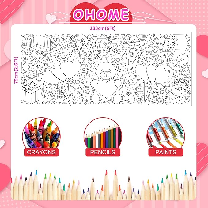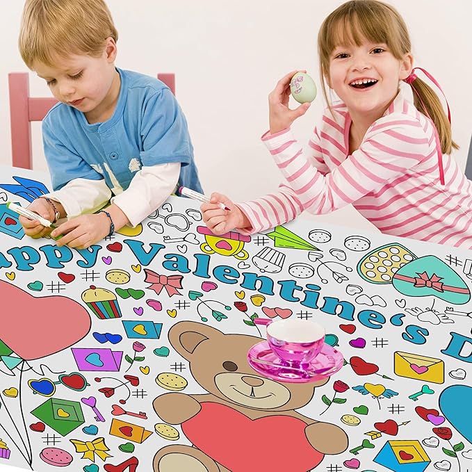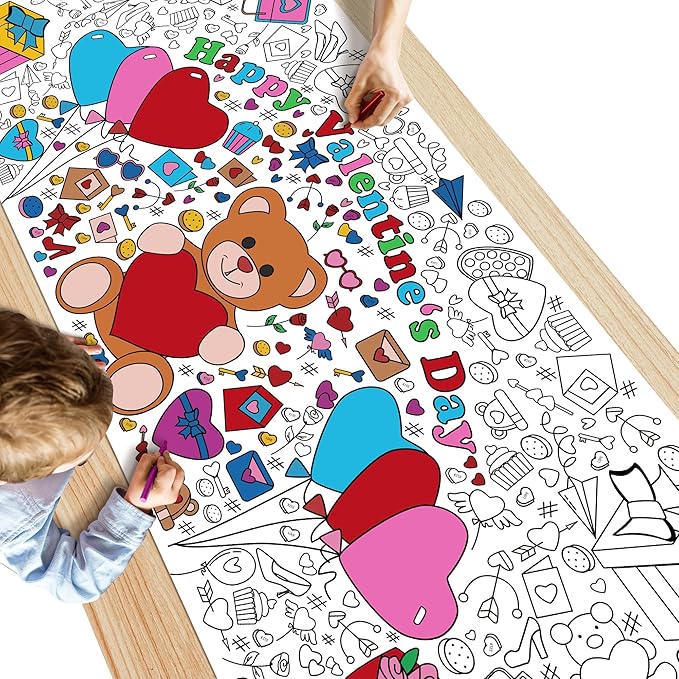 - [Beautifully Designed Crafts]:Kids valentines day gifts for school!Get ready to celebrate valentines Day in the most creative way! This coloring poster/tablecloth is perfect for kids and adults who love to express their artistic side.Valentines day treats