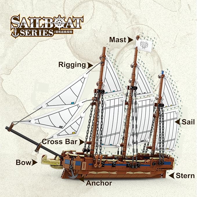 - This KAZI ship building kit for kids 8+ years old features a toy boat with a flexible sail, cross bar that actually turns.With over 637 pieces, this boat building block sets offers a building challenge to savor.