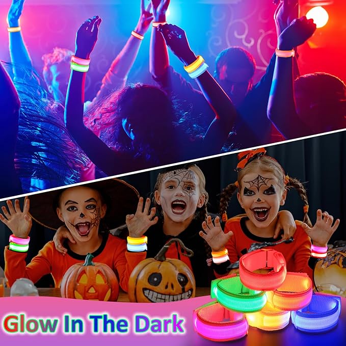 - Package Include: Glow flashing wristbands set contains 12pcs LED light up bracelets with 6 different colors to choose from, including yellow, green, blue, pink, red, orange. Satisfying your daily wearing, decorating and replacement demands.