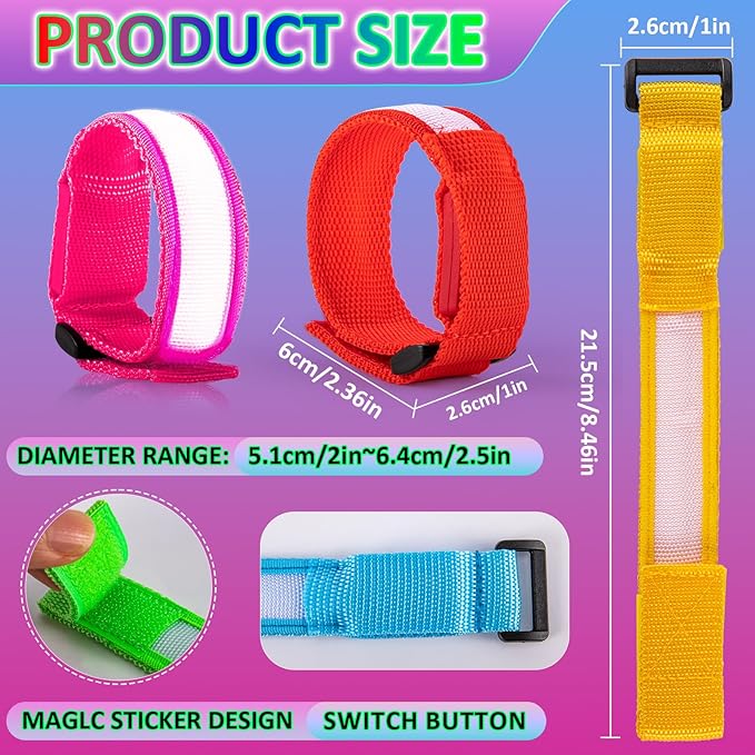 - High Quality Material: The LED glow flashing wristbands made of soft and durable nylon materials, lightweight and comfortable. Design with velcro allows you to adjust the size, suitable for all ages. You can wear it on your wrist or ankle according to your preference.