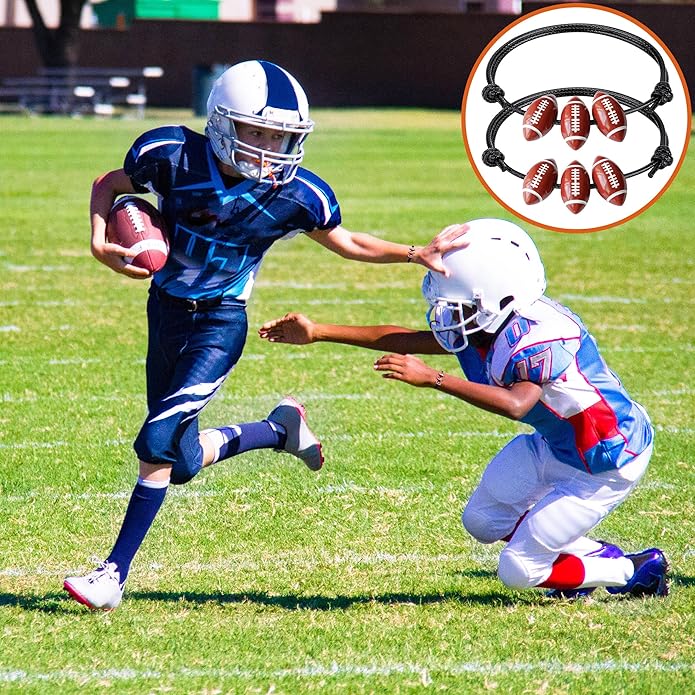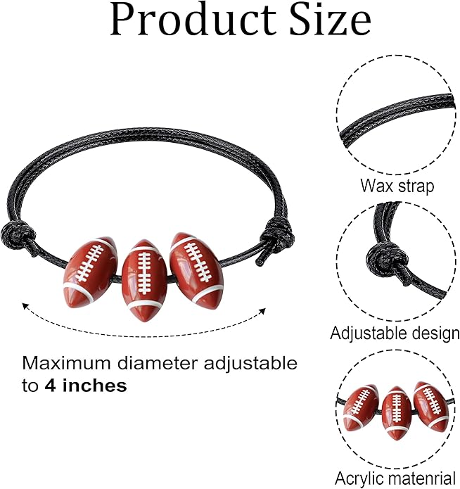 - 【High Quality Materials】Our football bracelet is made of quality waxed thread and acrylic material, which is reliable and will not fade, smooth surface, lightweight, and is not easy to break which can accompany you for a long time