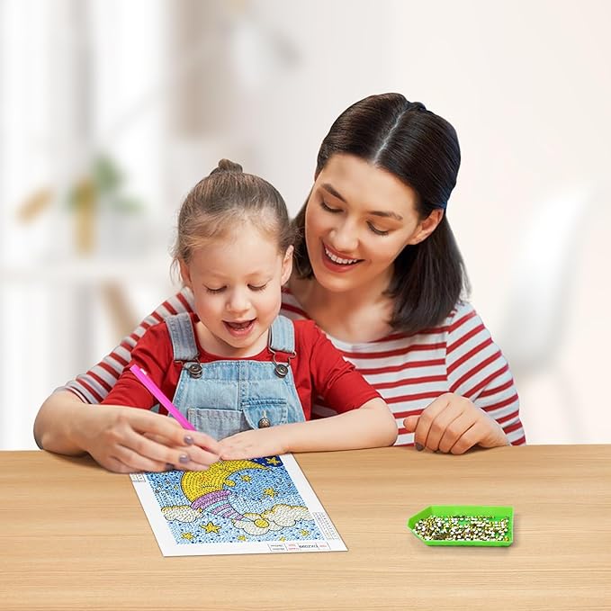 - 【Diamond Painting Kit for Kids】The kit contains diamond canvas, wooden frame, round diamond bag and tool set, the best handmade DIY kit for kids. Simply attach the diamond to the canvas to complete a work of art. It is also a fun project for diamond painting beginners.