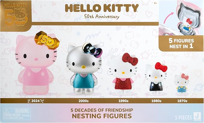 - HELLO KITTY 50th ANNIVERSARY It is time to celebrate five decades of friendship with the 50th Anniversary Hello Kitty Nesting Figures