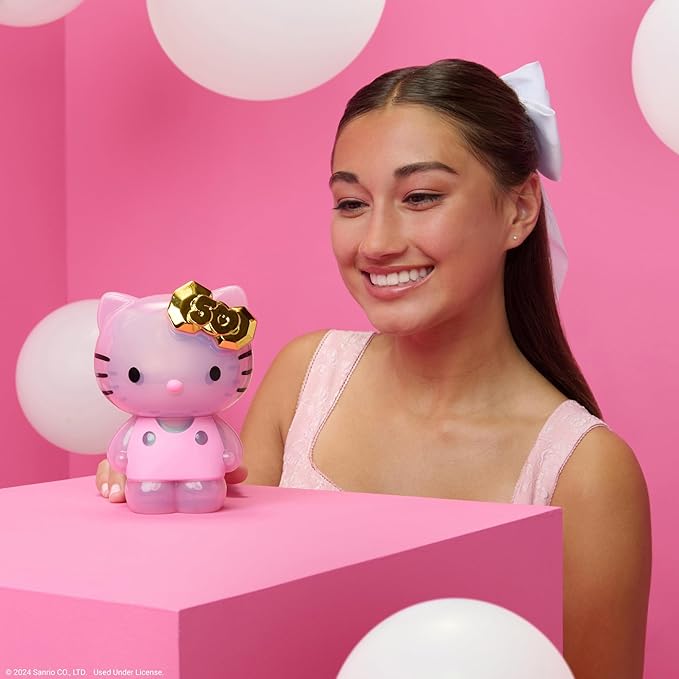 - FIVE FIGURES Each Hello Kitty figure comes in a unique finish: transparent, metallic, glitter, iridescent, and flocked