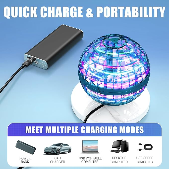 - Mesmerizing Light Show: This flying ball toy, measuring 5 centimeter, (5 cm) in diameter,eatures a dazzling 360rotating globe iluminated with vibrant, colour-changing LED lights, creating a captivating visual spectacle.