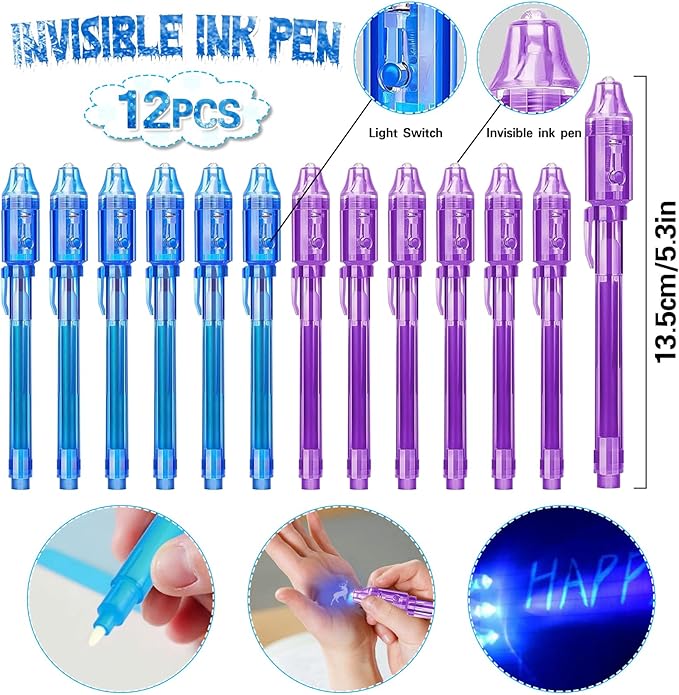 - High-quality materials: Invisible Ink pen and stampers are made of high-quality plastic, durable. The slap bracelets is made of environmentally friendly materials and can be repeatedly slapped, ensuring reliable quality. Snowflake notebooks are made of high-quality paper and are not easily damaged. Stickers are made of high-quality PVC material and are firmly attached. The keychain is made of high-quality silicone. All materials are made of safe materials, which are 100% safe for the human body.