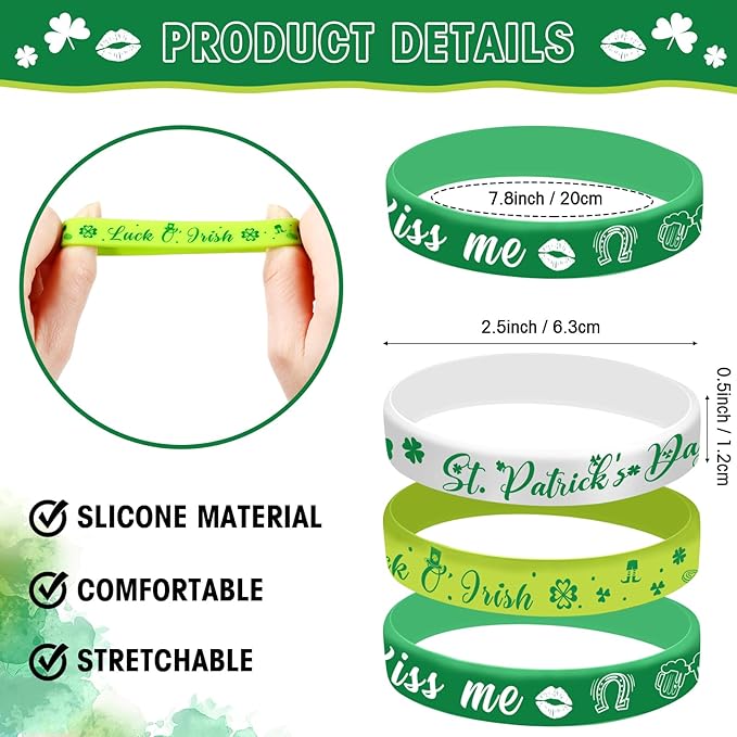 - Quality Material: our st Patrick wristbands are made of quality silicone material, comfortable to touch and elastic to wear, stretchable, not easy to deform, break and fade, and sturdy enough to withstand everyday wear, providing you a comfortable experience