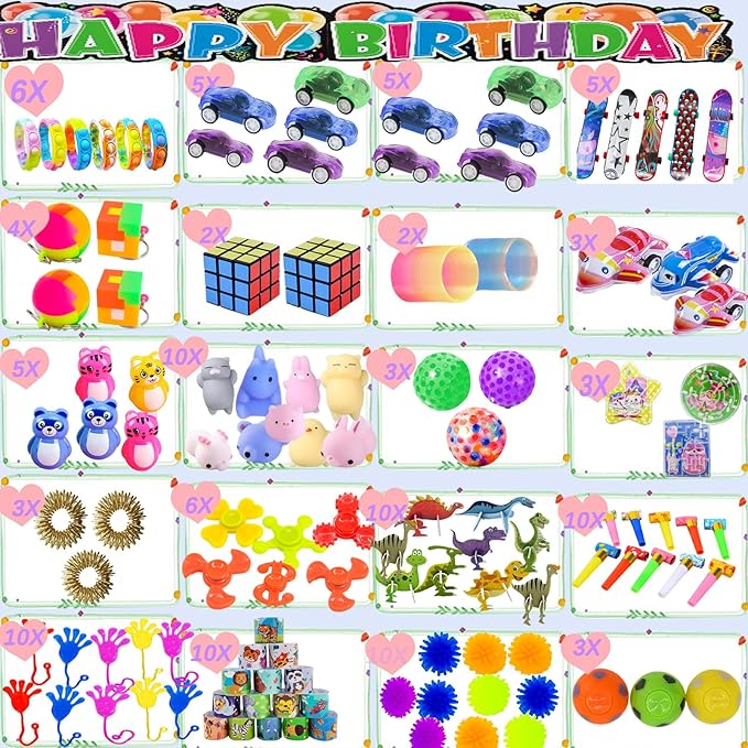 - Kids party favors: fidget party favor set is a great gift for birthday party, treasure box toys, goodie bags stuffers, christmas stocking stuffers, carnivals, easter basket stuffers and so on.