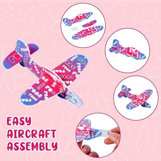 - 【Make Your Own Valentines Day Gifts】Writing text on the Valentine's Day card, and then put 1 card/1 pencil/1 eraser/1 foam airplane/1 sticker/1 slap bracelet/1 ruler into the Valentine's Day goodie bag, close the bag with the gold metal twist tie to create 28 party favor stationery bags. Perfet classroom exchange gifts to both girls and boys.Wonderful valentines day cards for kids school classroom.