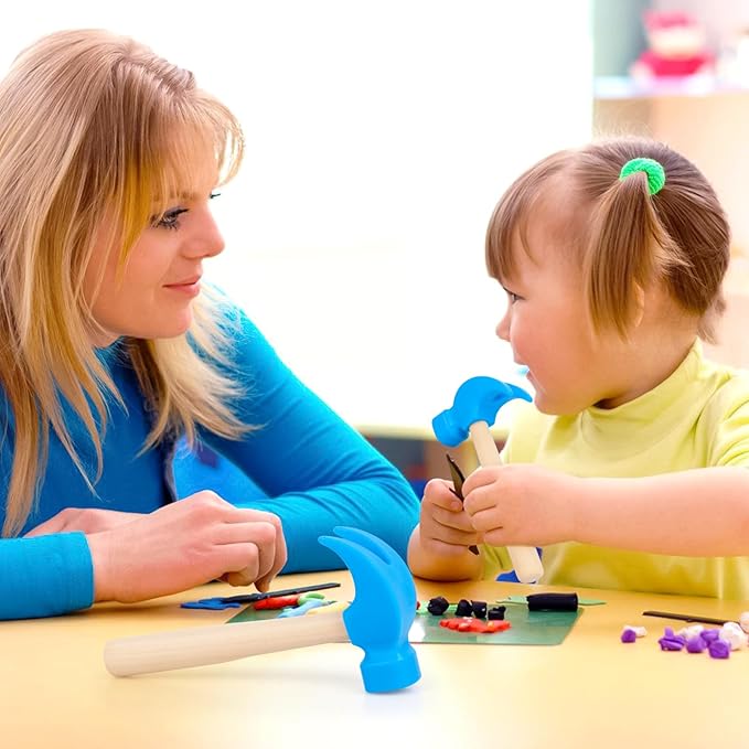 2 Pack Wooden Hammer Toys Simulation Hammers Maintenance Tools Educational Toys for Kids Birthday Party Games Supplies (Blue)