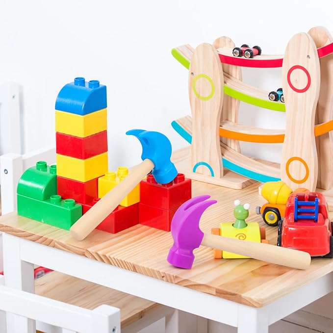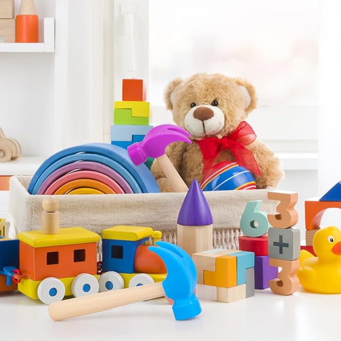 - Size: The package includes 1pcs blue wooden hammer toy and 1pcs purple wooden hammer toy, each wooden hammer size is 6.5 x 3 inch, comact size and lightweight, suitable for kids to play and convenient to carry.