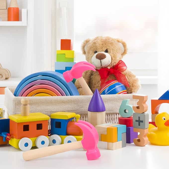 2 Pack Wooden Hammer Toys Simulation Hammers Maintenance Tools Educational Toys for Kids Birthday Party Games Supplies (Rose Red)