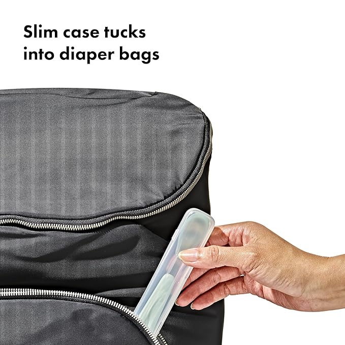 - Compact case fits easily into diaper bags and handbags for on-the-go meals