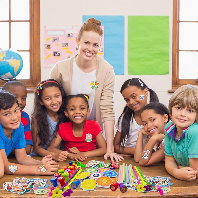 - Easy to Use: this set of spring flower classroom reward prizes bulk features cute flower images that are popular with children, smooth pens,pencils and notebooks, easy to use erasers,pencil sharpeners, and stickers,and children who receive gifts will use this stationery to learn to develop interest