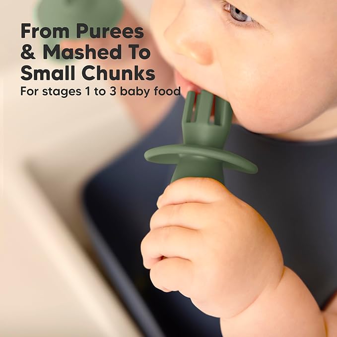 - Baby Led Weaning Spoons & Forks - Designed to explore different food textures, from purees to mashed and solid food chunks, your baby can transition seamlessly from Stage 1 to 3 of BLW and learn to eat independently with this baby training pre spoon.