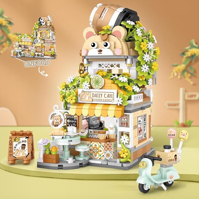 - 【Open & Close】This city cafe building blocks toy set contains 2 different shapes, open and close. It can inspire children's spacial imagination and creativity. 1077pcs mini building bricks, bring more challenges and fun.