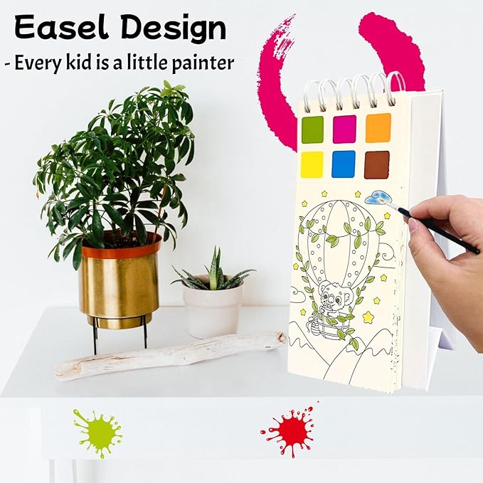 - Water Coloring Book: Made of coloring paper, comes with little brush and easel that designed for kids; Each drawing paper has 6 different colors of pigments; Besides, our painting book adds four new spare pages of pigments, we don't worry about they are not enough to paint anymore