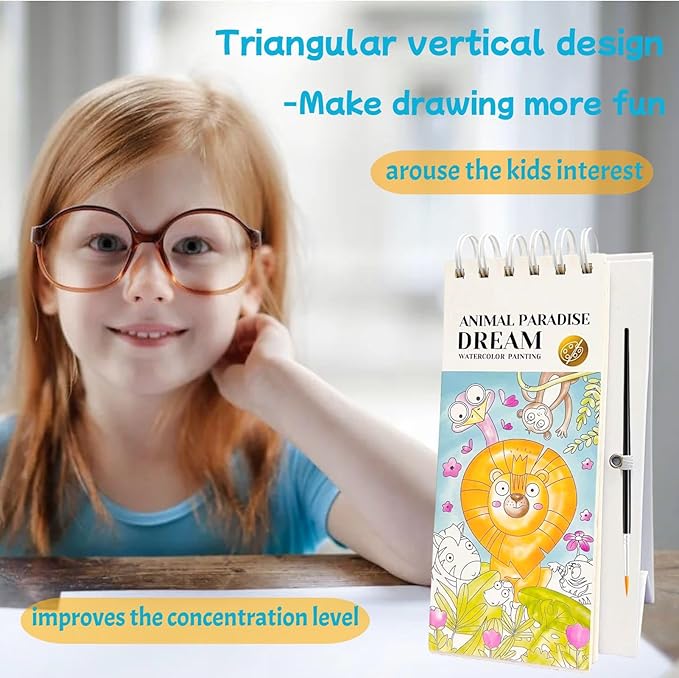 - Vertical Easel Design: Water painting easel book adopts a unique triangular vertical design that can make the painting book easily stand on the table to turn into a small easel; let our kids become little painters, and drawing also becomes more interesting