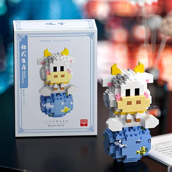 12 Mini Animals Building Blocks Sets Building Block Party Favor for Kids Small Zodiac Animals Pets Horse Dog Monkey Tiger Rabbit Dragon STEM Educational Toys for Boys Girls(Cattle)