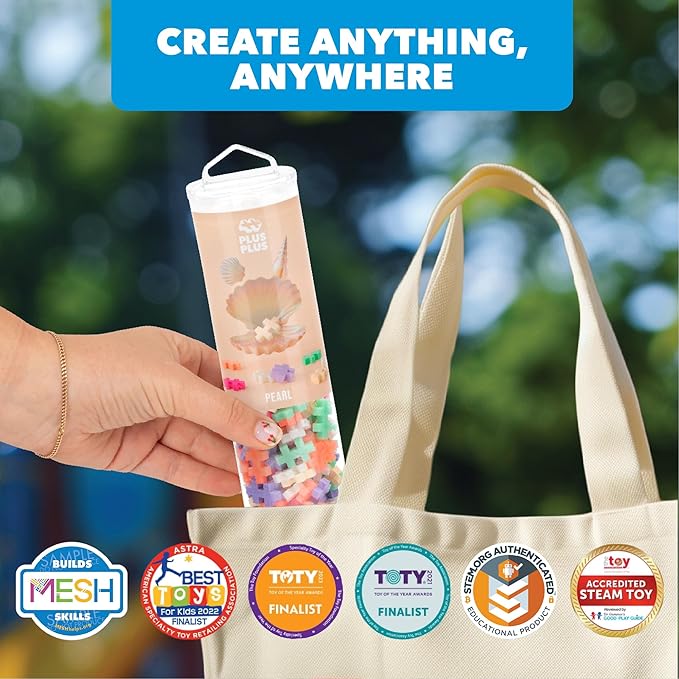 PLUS PLUS 240 Piece Interlocking Building Blocks for Kids, Open Ended Connecting Toys, STEM Bin Classroom Mini Manipulatives - Pearl Mix Play Tube