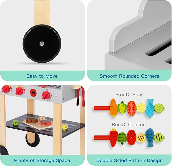 • LEARN AND PLAY: Play pretend grilling with role play that will stimulate your child's imagination and creativity, develop fine motor skills, hand-eye coordination language and communication skills