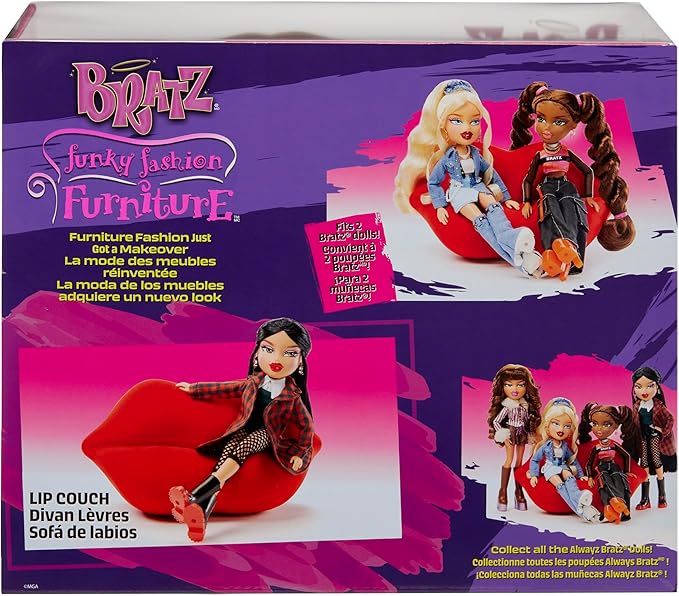 - ICONIC SHAPE: This iconic lip couch has been spotted in Bratz content as early as 2005, and as recently as the Alwayz Bratz TikTok series. The whole Bratz Pack will love hanging out on this super stylin’ couch!