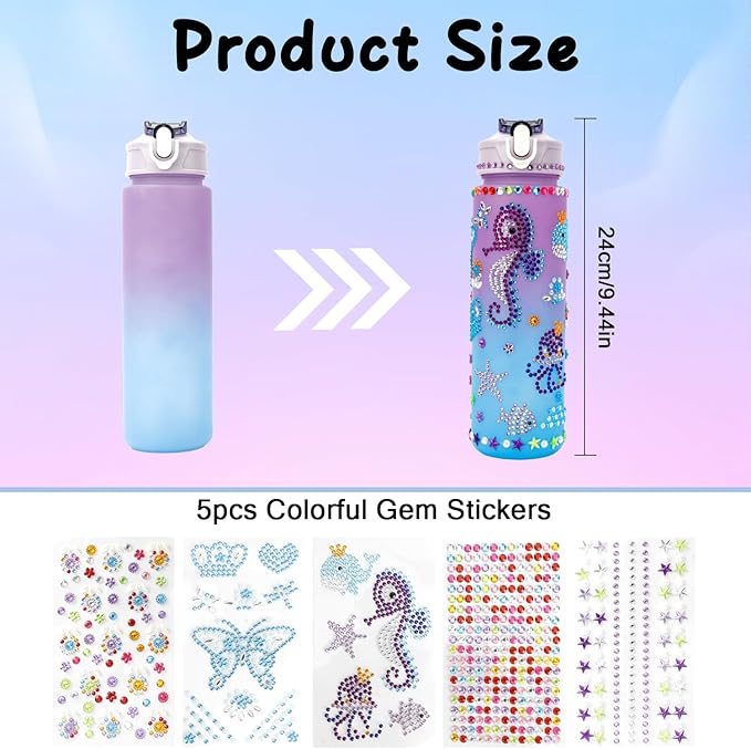 - Decorate Your Own Water Bottle: This fun set includes: 1 x water bottle, 1 x beautiful gift box, 5 sheets colorful gemstone stickers. Our DIY water bottle kits allow girls to personalize their own water bottles and create one-of-a-kind masterpieces that are more than just a craft project, they are a way for girls to express their unique style and personality.