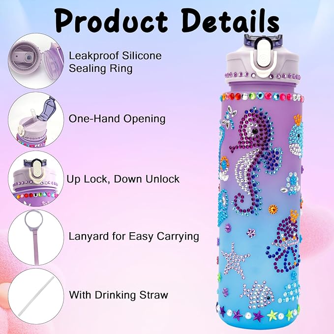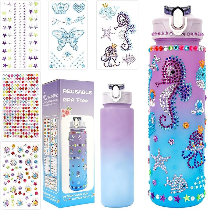 - Ideal DIY Gift for Girls: How special and interesting DIY gift for girls on any holiday or birthday! This fun and engaging art and craft supplies kit includes everything you need to beautify and personalize your water bottle craft kit! Keep girls busy with their favorite simple craft activities: Just peel off the glittery gemstone stickers and attach them to the water bottle!