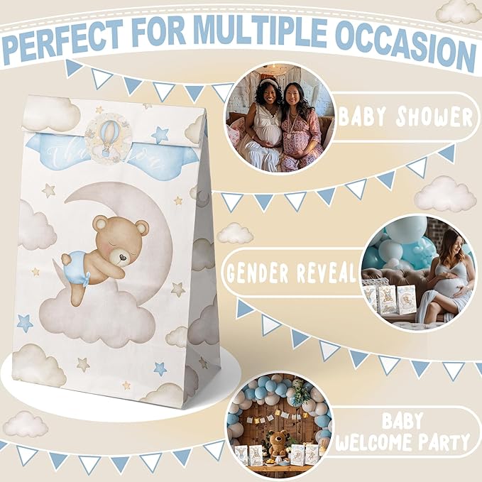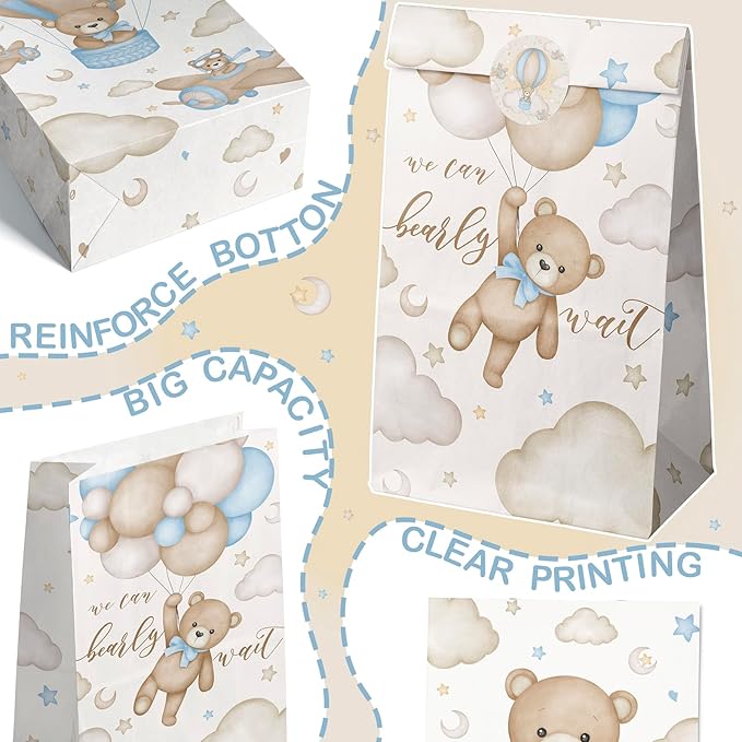- High-Quality and Eco-Friendly - Made from premium, eco-friendly Kraft paper, these favor bags not only carry the adorable teddy bear theme but also demonstrate your commitment to the environment. Their durable design and odor-free material make them a reliable choice for your baby shower.