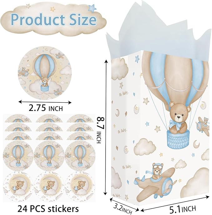 - Complete Celebratory Set - This set includes 24 beautifully crafted Teddy Bear themed paper bags and 24 charming stickers with delightful teddy bear motifs, ideal for creating memorable take-home gifts for your guests. The mix-and-match possibilities allow for personalized touches that resonate with your baby shower theme.