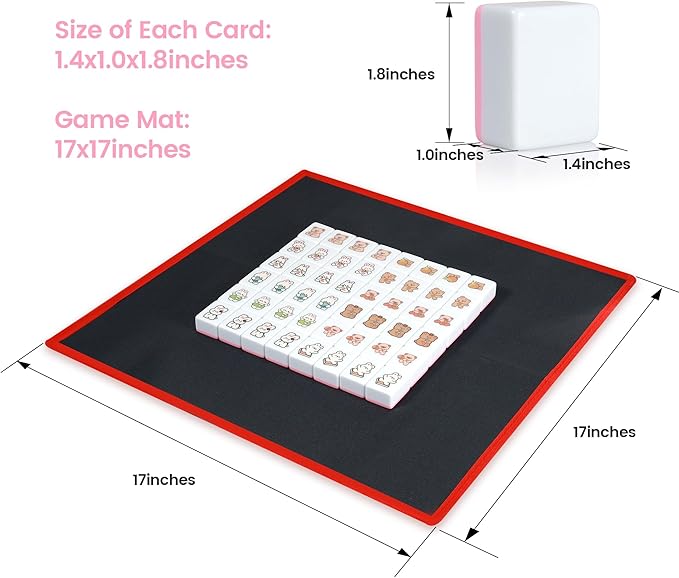 - SIZE: The Mahiong set contains 49 mahjong tiles, each measuring 1.4 x 1.0 x 0.8 inches (35 mm x 26 mm x 19 mm). There is also a non-slip mahjong mat that is easy to carry around to enhance the gaming experience and start playing family games anytime, anywhere!