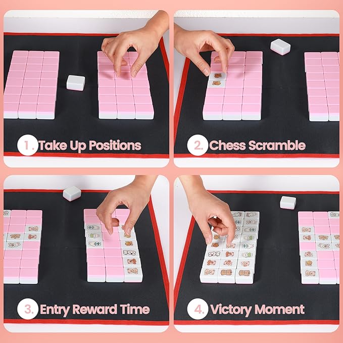 - Color: Mahjong tiles game are all hand-colored by laser, full and even color, long rubbing does not fade,The back of the mahjong tile is pink and the surface is white, you can match any stickers you like on the white surface, animal stickers and so on.