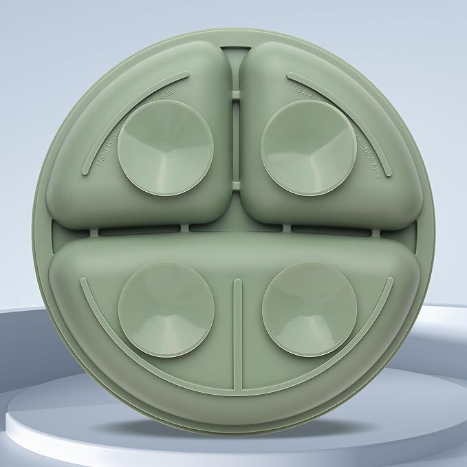 - Divided Suction Plates for Baby: Our toddler plates feature divided compartments in different sizes, perfect for parents to dispense different flavors of food. The kids plates 4 strong suction cups on the bottom of the plate, evenly distributed, we put the plate on smooth surfaces, especially high chairs and trays, it stays in place throughout the meal, a baby feeding essentials!