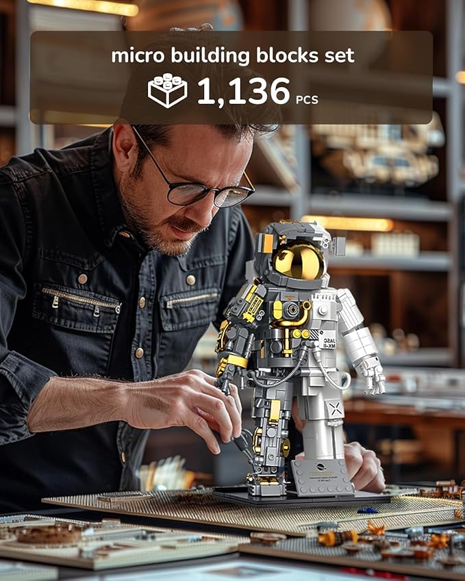 Kimiangel Astronaut Building Block Sets, Building Sets for Adults, Space Astronaut Building Block Set, 966 Pcs Astronaut Building Set for Adults