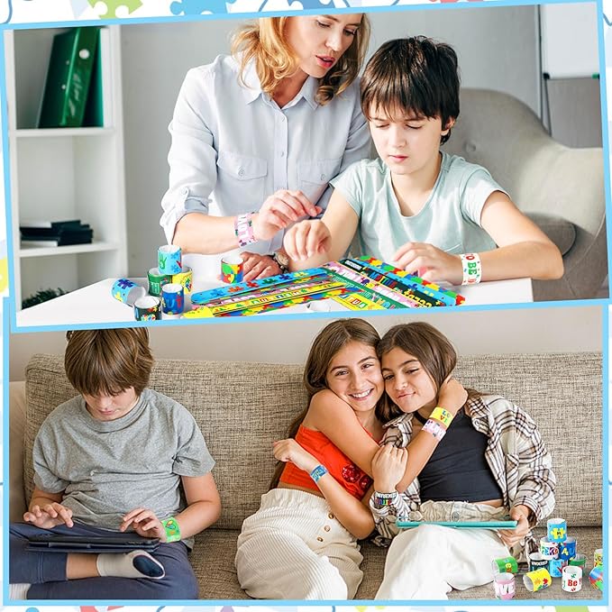 - 【Durable Material】The autism awareness slap bracelets are made of durable metal core inside, with clear pattern and bright colors. These slap bands bulks are tightly wrapped with soft PVC material outside, which is not easy to break and is safe for children to wear