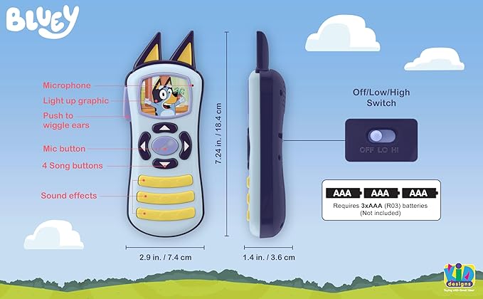 eKids Bluey Toy Remote Control for Toddlers with Built-in Music and Sound Effects, Designed for Fans of Bluey Toys