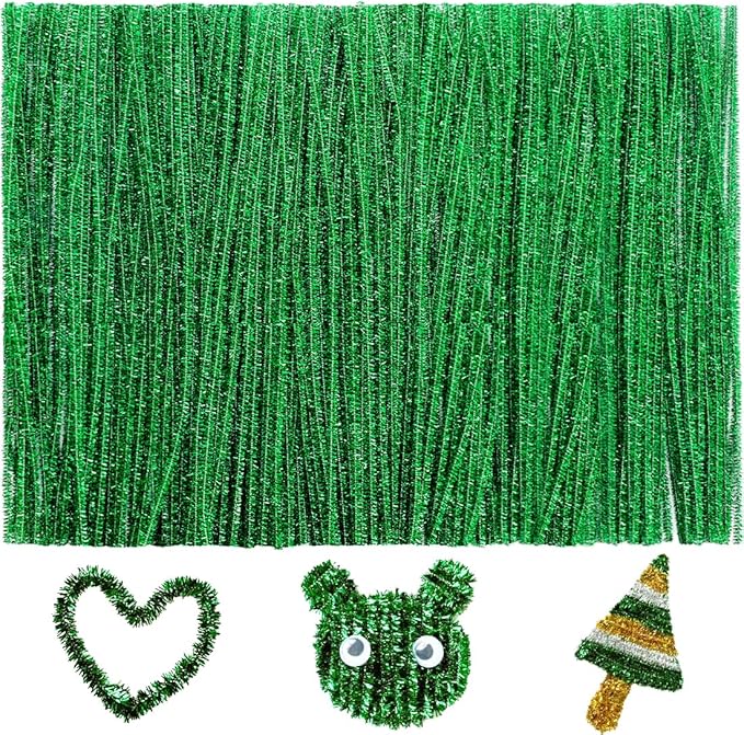 200pcs Pipe Cleaners, Pipe Cleaners for Crafts, Craft Supplies Chenille Stems for Art&Craft Christmas DIY Projects(12inch*6mm,Green Glitter)