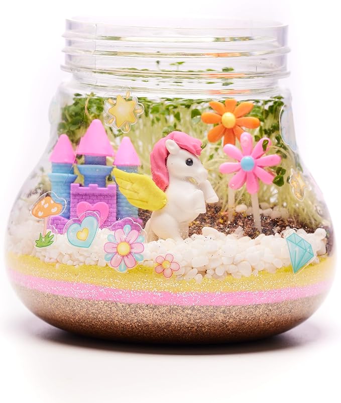- SCIENCE KITS FOR KIDS: Explore the wonder of nature with an educational science kit, complete with unicorn toys for girls age 6-8+. This STEM science kit for kids comes with enough seeds to grow your terrarium twice. Spark curiosity, inspire creativity, and wonder about the magic of unicorns while creating a unique arts and crafts for kids